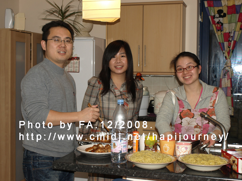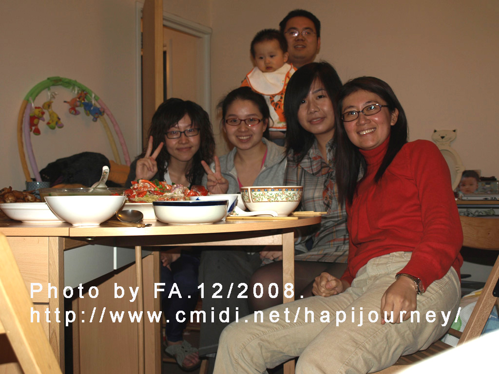差不多五時,我們一起到她家吃飯。她的大哥和大嫂很好客,她的大嫂更有一手好廚藝呢!所以這晚餐很豐富:有龍蝦、有湯和雞翼……更有鳳凰衛視呢!原來世界發生這麽多事,為何我看到的只是英國的消息,沒有別國的呢?後來他們告訴我英國一向如此自大和自閉……最後更有湯圓吃,原來這天是中國的冬至(即小年)的日子。