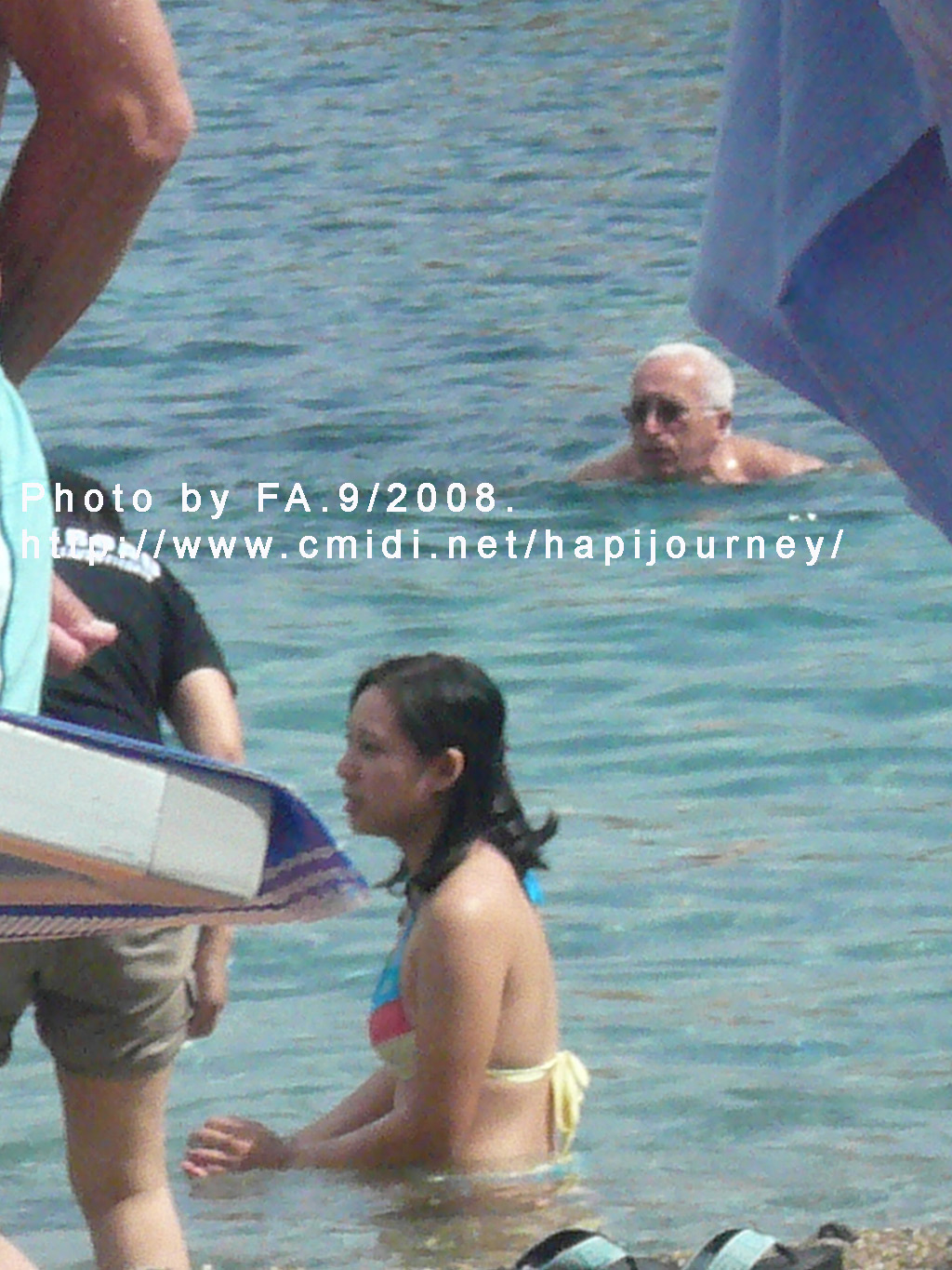 之後,我們就步行到市內逛逛及到海灘:薇薇游泳,而我們就曬太陽,並乘船出海。