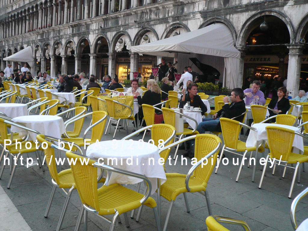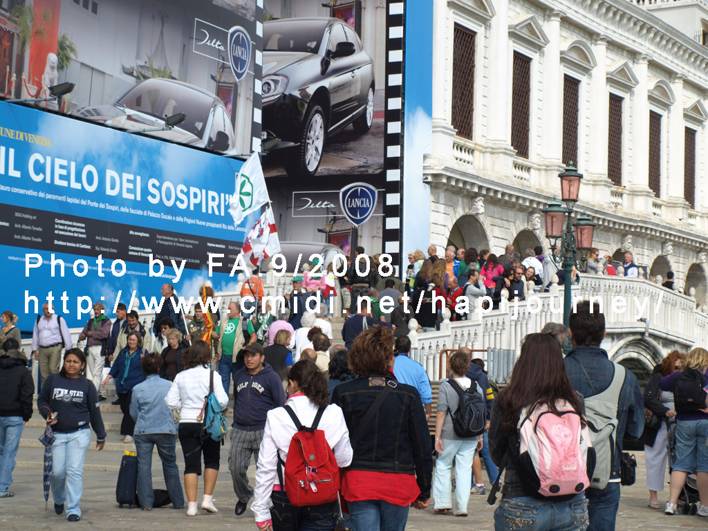 我們到達旅館後,安頓妥當後就坐船出發到聖馬可廣場一帶和杜卡雷皇宮一帶參觀。那裏人山人海,我們也非常興奮的拿出相機不斷拍,不想到皇宮參觀呢!