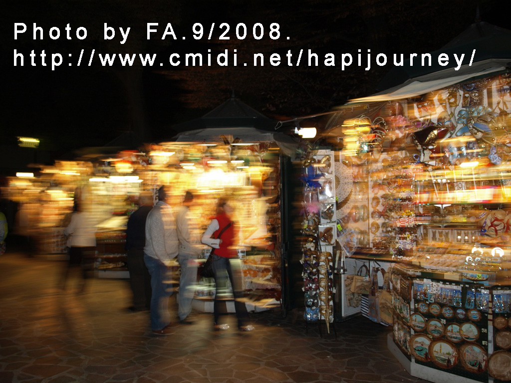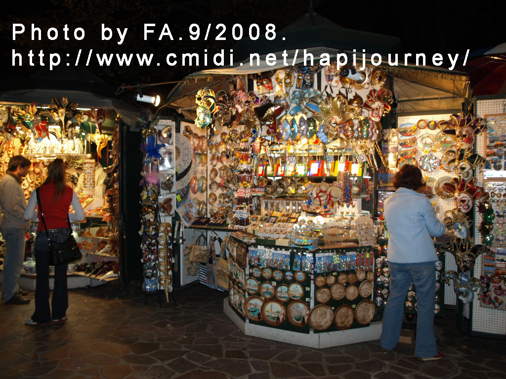 之後我們就離開,並欣賞一下威尼斯的中秋之夜;可能太開心了,故當時離開時都忘了取回水壺,而薇薇也於拍照其間掉了2歐羅的地圖呢!