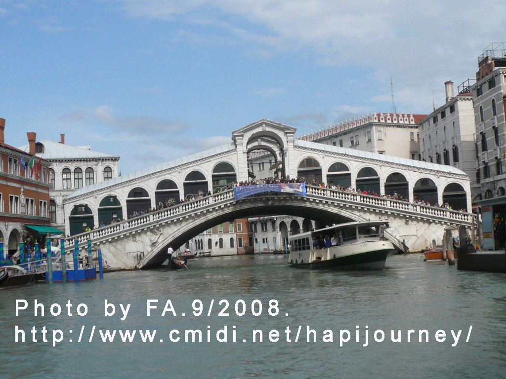 完成了米蘭站之後,我們三人就往水鄉—威尼斯出發。威尼斯帝國源於歐洲大陸,於五世紀時被異族入侵才遷移到沿岸的百多個島嶼。13-16世紀,以古羅馬式共和國治理,由一群貴族組成的元考院領導的威尼斯共和國,藉由十字軍東征之名,取得亞得里亞海的海上霸權。而威尼斯市內以船為主要交通工具。
