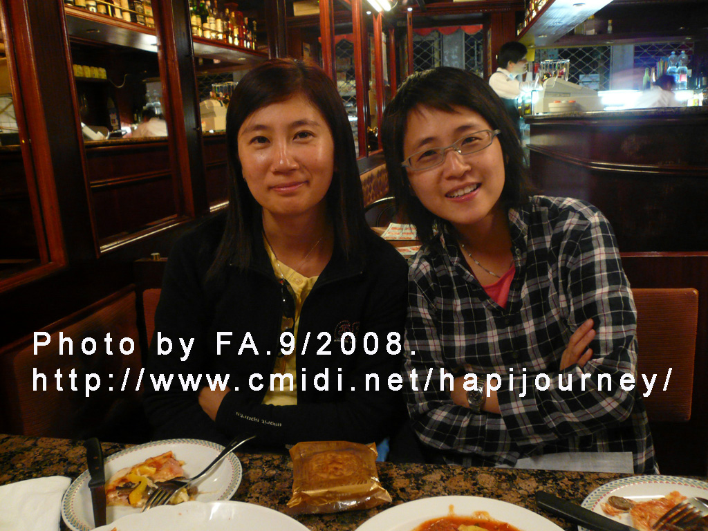 走了一天路,我們決定不煮飯,就到附近一間中國人開的意大利餐廳吃晚飯,皆因這裏是最便宜的了。而吃完晚飯後,薇薇和Etta則拿出穿洲過省的月餅在異鄉慶祝中秋節呢!果然是一個很不同的中秋節。