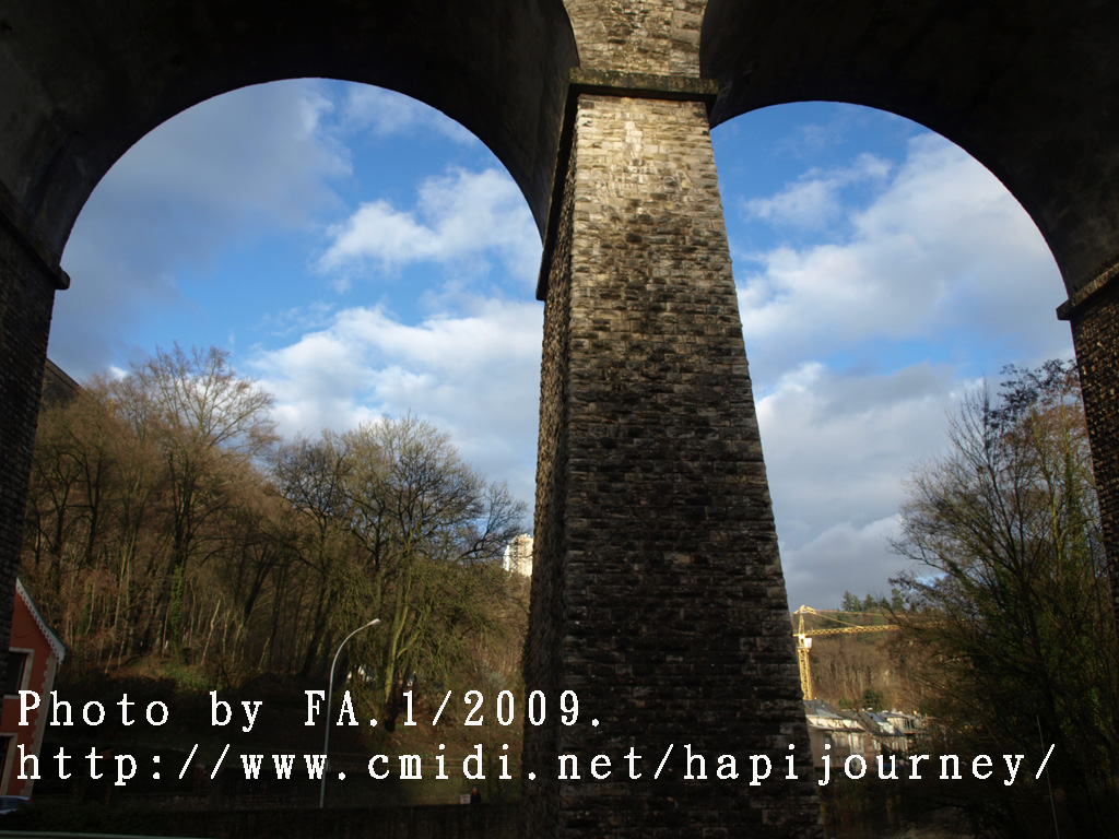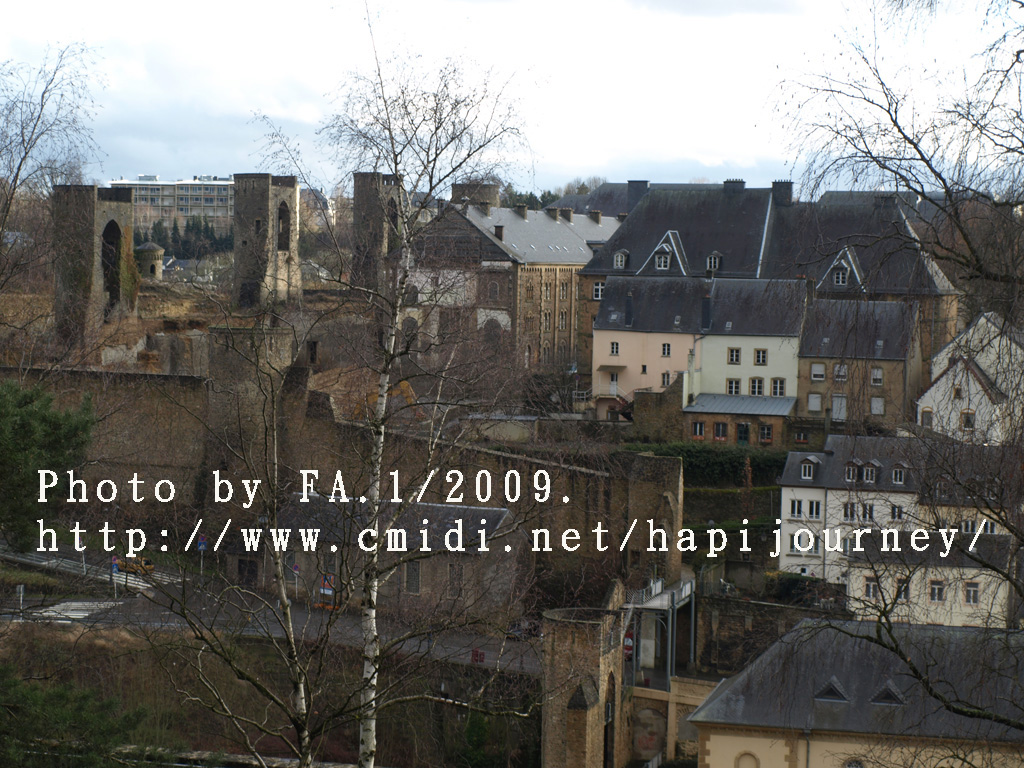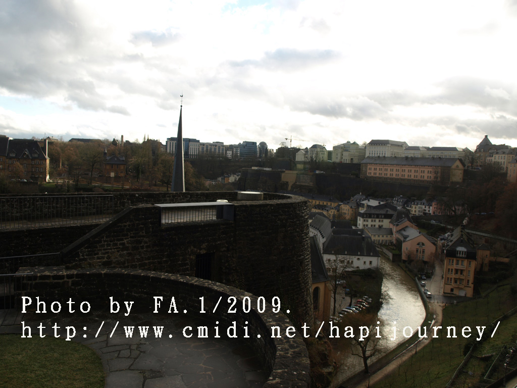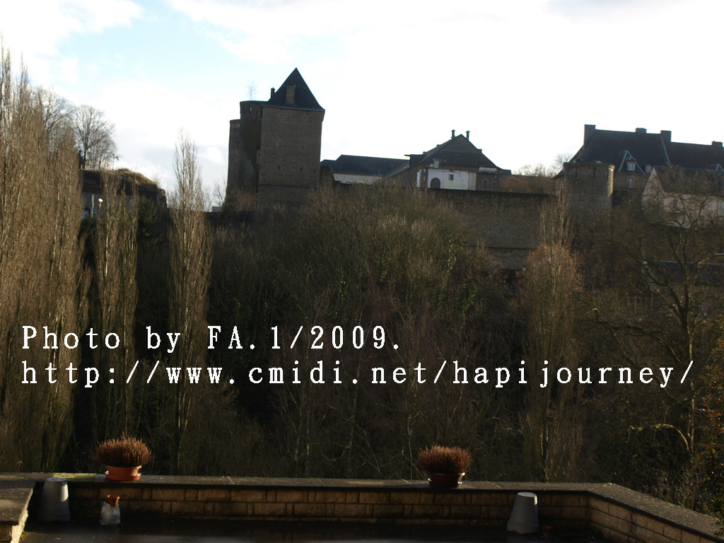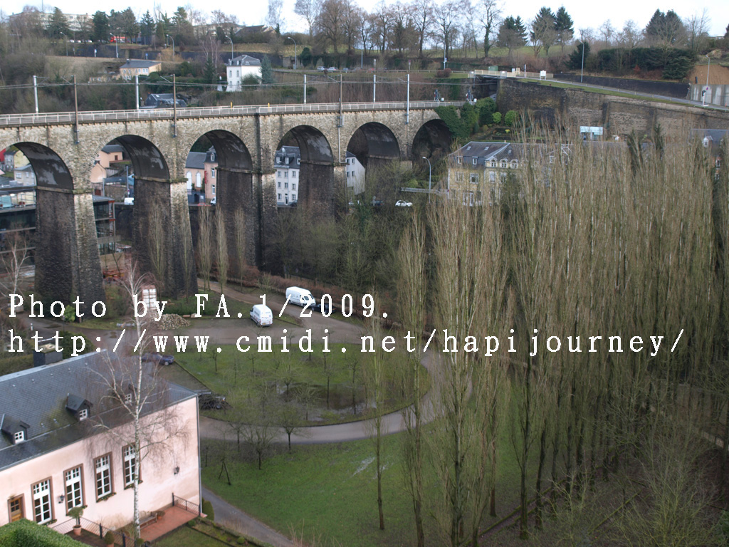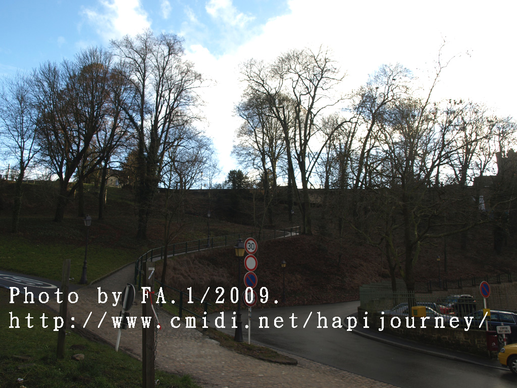 既然機會難得,我就提早於市中心下車,再像昨天一樣往回走,可以拍和昨天不同的景色,也可看盧森堡不在天雨隴罩下的真面目是怎樣的!感謝神!在我要離開前都能見見盧森堡的晴天之景色,果然是很優美的,也真正領略到盧森堡是如何的建設於丘陵上,在參天或不齊的樹木環繞著別有一番與比利時不同的味道。