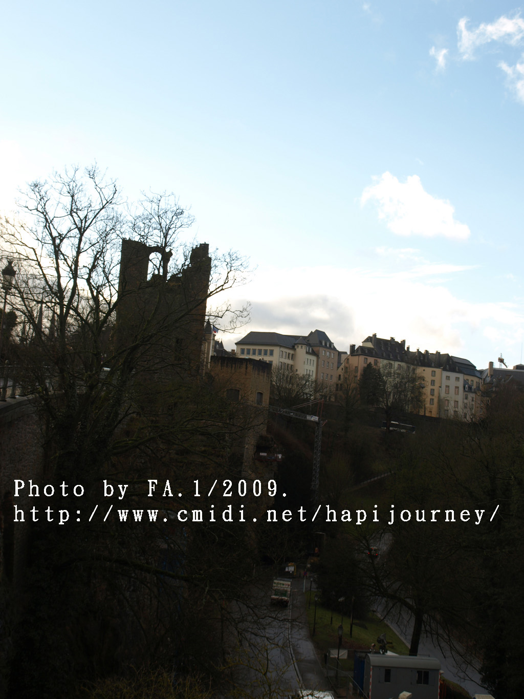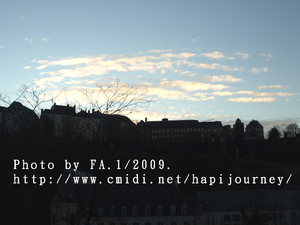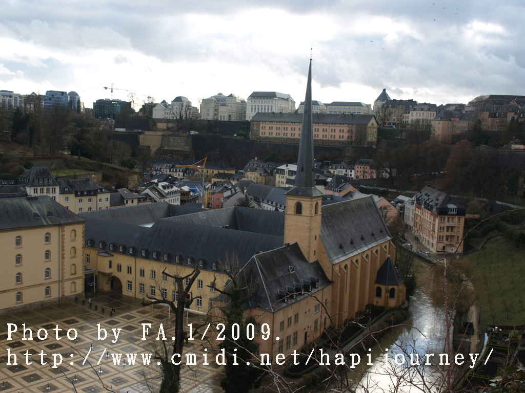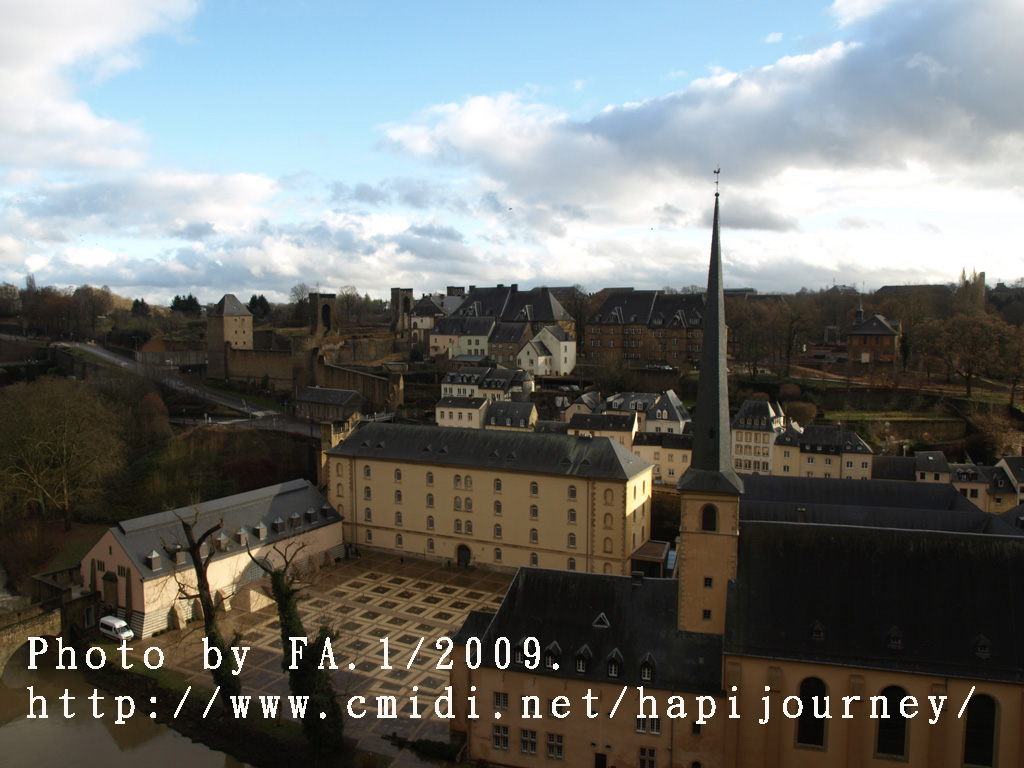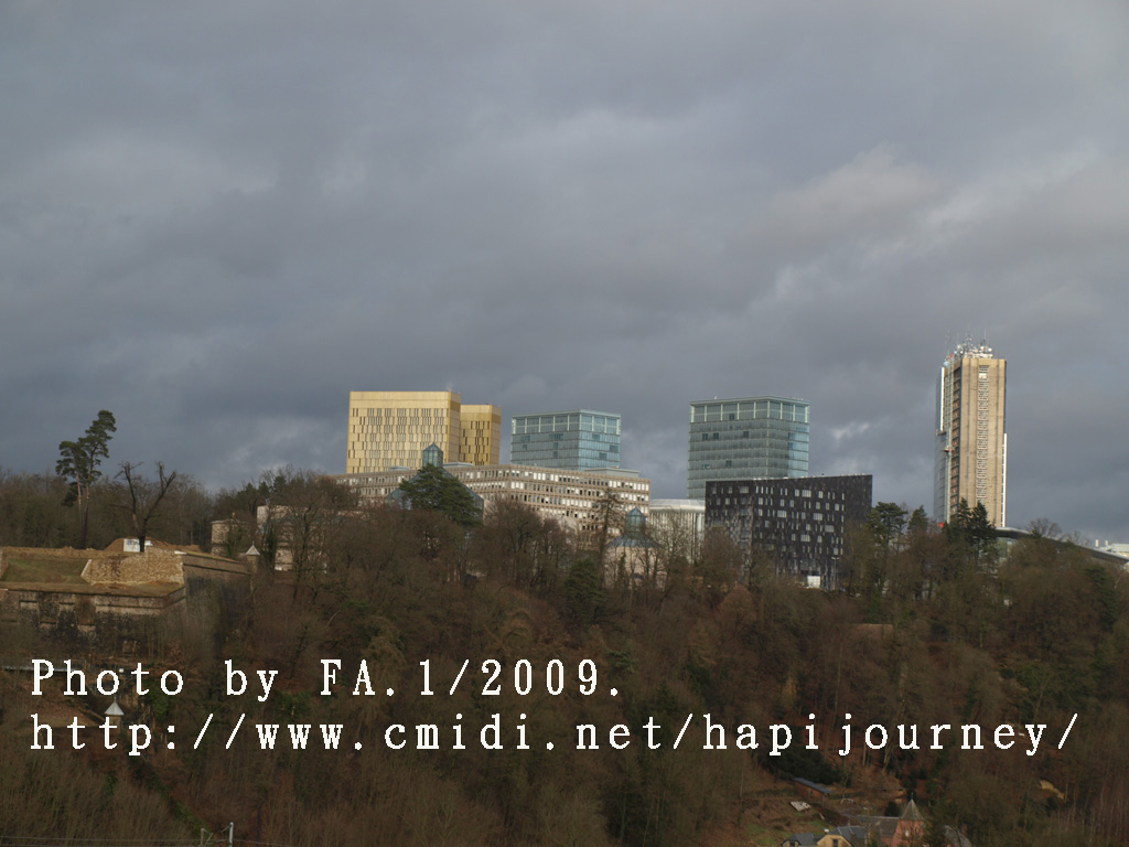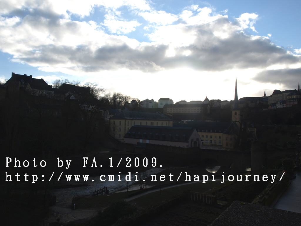 既然機會難得,我就提早於市中心下車,再像昨天一樣往回走,可以拍和昨天不同的景色,也可看盧森堡不在天雨隴罩下的真面目是怎樣的!感謝神!在我要離開前都能見見盧森堡的晴天之景色,果然是很優美的,也真正領略到盧森堡是如何的建設於丘陵上,在參天或不齊的樹木環繞著別有一番與比利時不同的味道。