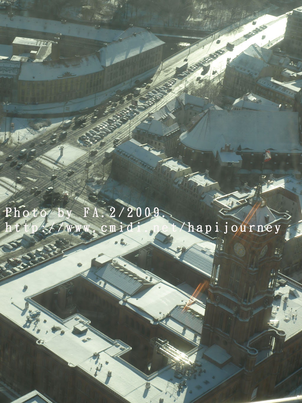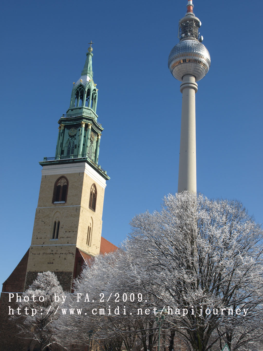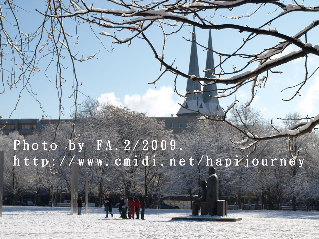 下了整整兩天的雪,雪後的柏林變得比之前更美,加上晴天,整個景象剛變得生氣盎然,好不愉悅。而我因為同房的反應:這麽好的天氣,登上塔樓俯瞰整個柏林市會否是白茫茫一片,什麽都看不見呢!所以我11時前就步行至柏林的聖母大教堂,希望可以登上塔頂看看是否如此景況。誰知教堂沒有開放塔頂讓人參觀,那我惟有決定登上另一高塔—電視塔,能360度看看柏林的市景。