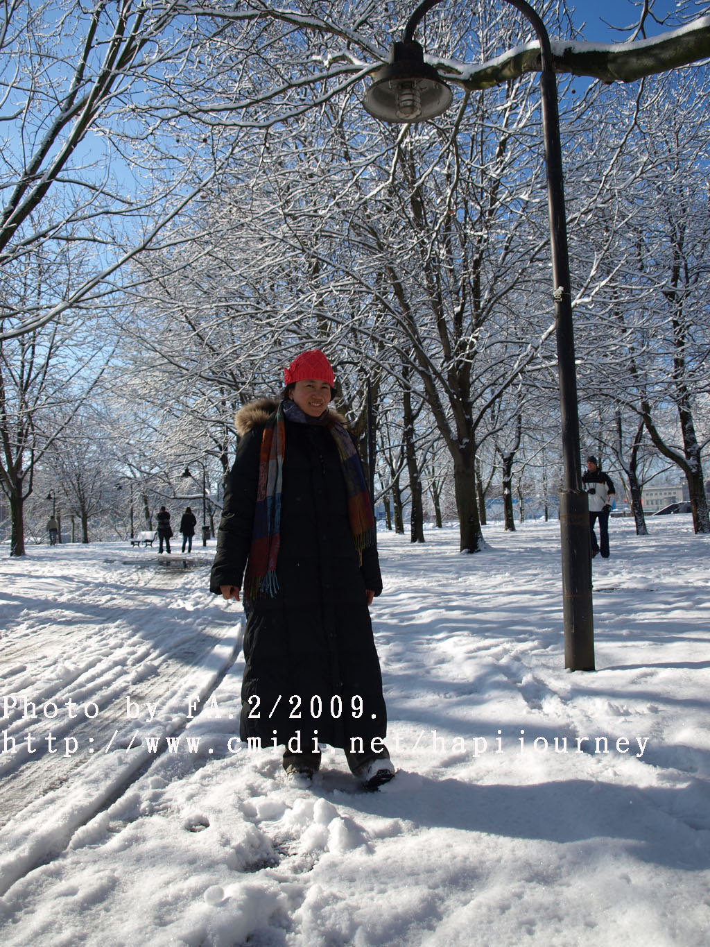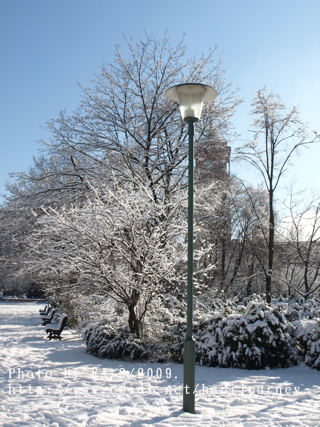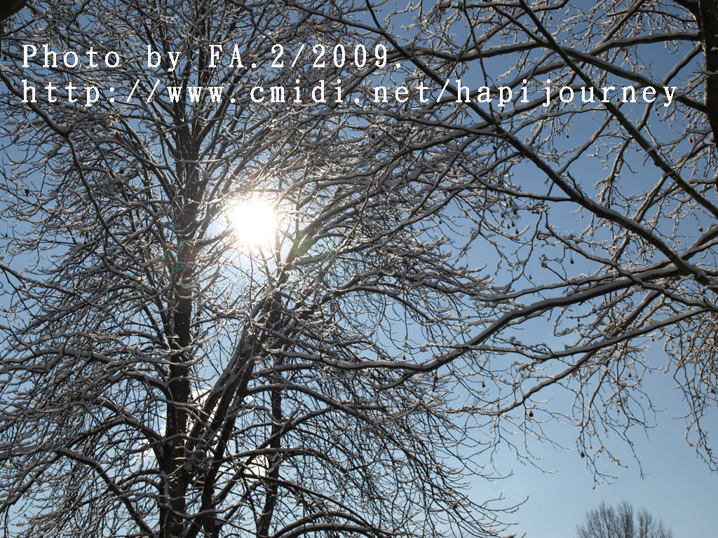 然後我決定步行回去,因為沿途有很多樹木,加上下了雪相信拍照應該很不錯的。果然沿途所經過的雪景真的一流;不過我則走了差不多兩個小時才到新國會大夏附近,這時候排隊的人也少了,但不知為何我仍是不肯進去,打算明天才來。