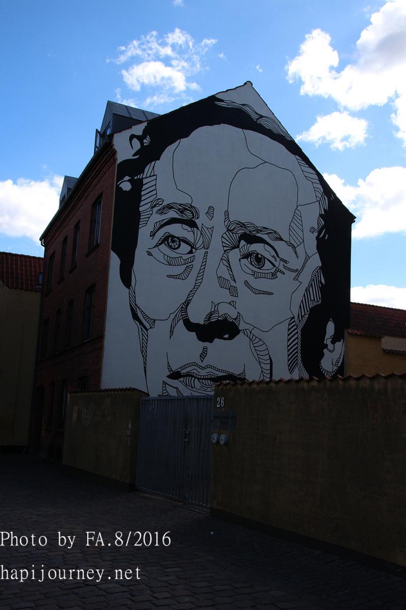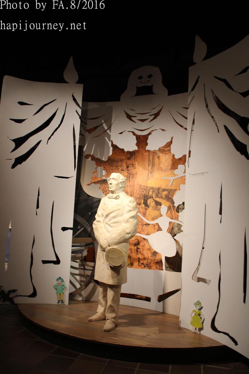 但從這樣的平房就知道安徒生童年生活是怎樣的刻苦了!當我們進入安徒生小時候由2至4歲的居所,只見館內展故居昔日外貌的舊相片,和一些簡單但不多的用品。所以我們只是逗留了半個小時左右就離開往另一景點─安徒生博物館(H.C.Andersens Hus)去。這次我們放聰明了:我們沿著綠色小腳印走,很快走到一個以太陽的小笑臉為造型的指示牌。我們急步走去購票,由於我們先前在安徒生故居參觀過,故再買票則有折扣。相對於安徒生故居的冷清,這個安徒生博物館則相對熱鬧,人流並不少,且博物館設計也頗新穎。