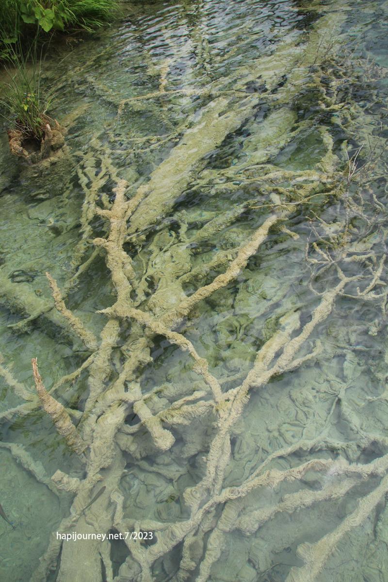 上了船,數分鐘後我們就在昨天的碼頭落船。按指示往另一邊走。早上的湖區人流雖不少,但大家都不太喧嚷,我們在林蔭下慢慢走,且涼風習習,並不感到熱,反而很舒服和安靜。從湖區的木路、山路都看到管理上的心思和保護,成能讓遊人欣賞到清澈見底有如藍寶石或碧玉的湖水,縱然是湖底的枯木、魚或是水草等都在水中盪漾,真是令人讚嘆不絕。
